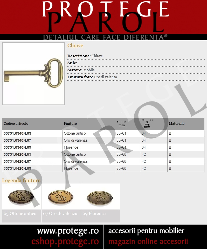 Cheie alama, Hepplewhite, alama antica, 33717.0420N.03